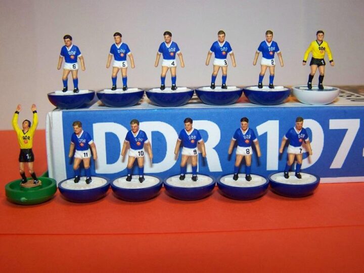 Poi arrivarono altre glorie, la Germania Ovest “ref. 156”, l’Olanda di quel magico arancione “ref. 13”, e la mia amata Italia “Zombie”, un po’ instabile, basculante, con il pesetto scollato dalla base tanto da sembrare un rattle, ma amata come non mai.