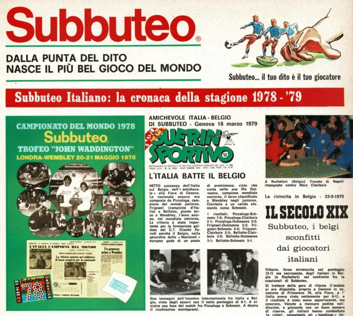 Divoravo con avidità tutte le notizie relative ai tornei “Guerin Subbuteo”, invidiavo i partecipanti, alcuni dei quali, successivamente, avrei conosciuto personalmente e in particolare Frignani, più volte campione d’Italia. Divoravo qualsiasi tipo di rivista per carpire formazioni e colori delle maglie; periodicamente, quando i risparmi lo consentivano, scendevo in città per fare incetta di giornali sportivi stranieri, France Football, Onze, L’Équipe, Don Balón, Shot, A Bola e Kickers, che conservo tutt’ora come reliquie.