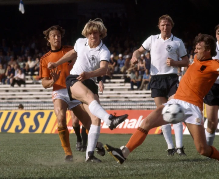 La conferma della povertà tecnica della formazione olandese arrivò con il big-match contro i favoritissimi tedeschi, disputato allo stadio San Paolo di Napoli il 14 giugno 1980. Fu il giorno di Klaus Allofs, all’epoca ventitreenne attaccante del Fortuna Düsseldorf, che realizzò una memorabile tripletta.