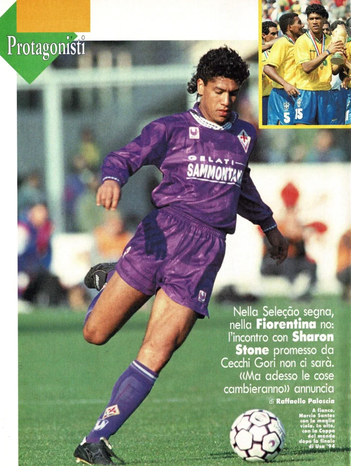 Quando Márcio Santos arrivò a Firenze, ancora frastornato dalla festa mondiale celebrata a casa di Romario, si presentò con la spavalderia tipica di un neo campione del mondo. In conferenza stampa dichiarò: “Non temo niente, neanche il Milan che ormai è vecchio e senza Van Basten. Il miglior difensore al mondo? Nella squadra ideale del Mondiale la FIFA ha scelto me… fate voi!”