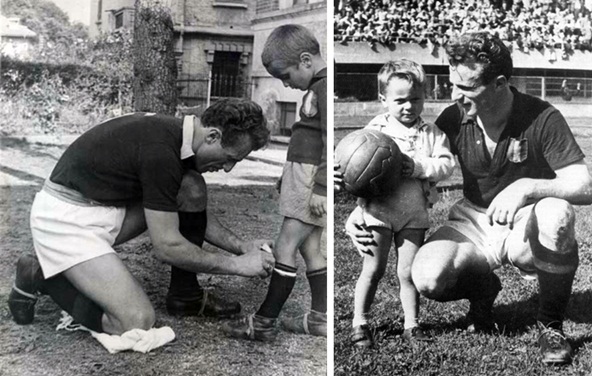Sandro Mazzola nasce l’8 novembre 1942, una domenica – quasi un segno del destino per un futuro calciatore. Figlio del leggendario Valentino Mazzola, inizia prestissimo a muovere i primi passi su un campo di calcio. Come mascotte del “grande Torino” appare nelle classiche foto prima delle partite quando non ha nemmeno quattro anni. Il padre l’aveva subito introdotto in quell’ambiente perché per il piccolo Sandro non esisteva altro giocattolo che il pallone. È difficile dire se già allora avesse chiaro quale sarebbe stata la sua carriera – un bambino di quattro anni non si pone certi problemi. Ma quando succede la tragedia di Superga, nel 1949, il piccolo Mazzola ha poco meno di sette anni e sente già il peso di dover continuare un giorno le gesta del padre.